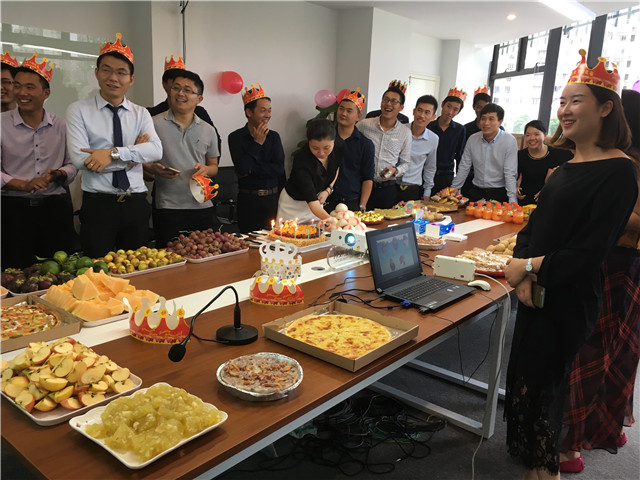 2016年9月14日,華威公司在千花島營銷中心會議室舉辦了簡單而熱鬧的“2016年第三季度員工生日會”,人資行政部精心準備了實用的禮物和豐盛的美食,為26位壽星慶祝。
